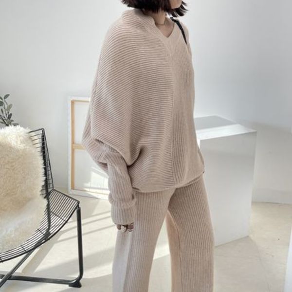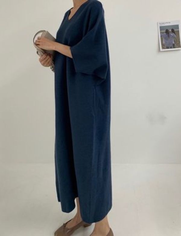 ニット素材のルーズシルエットワンピは、伸縮性抜群で快適な着心地。ざっくりVネックが顔まわりをすっきりときれい目な印象に見せてくれます。レギンスやパンツとのレイヤードもおすすめです。