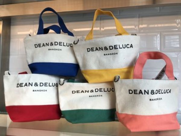 気兼ねなくガシガシ使いたい方におすすめなのが、 DEAN&DELUCA(ディーンアンドデルーカ)。バイカラーになったロゴバッグは、バリエーション豊富で色選びも楽しいです!なんとショルダーストラップ付なので、斜めがけもできて街歩きも身軽です。