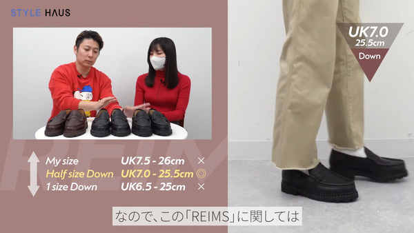 サイズ選びに関して、ワンサイズ落としてしまうと少し小さく感じてしまうため、普段のスニーカーサイズを基準にハーフサイズ下げるのがポイントです。