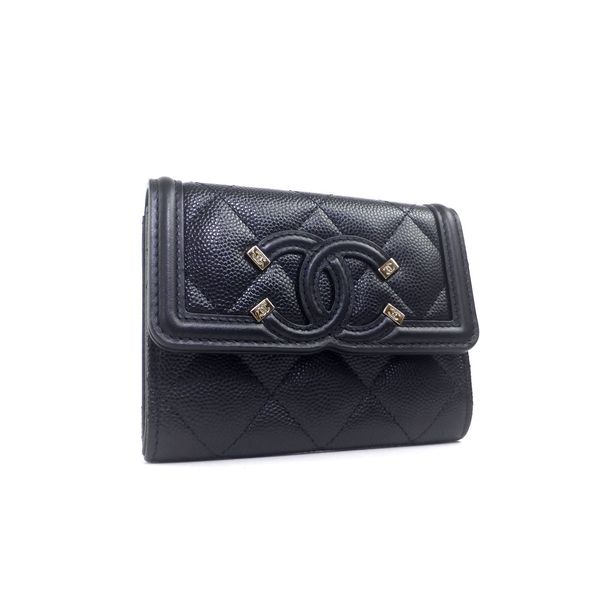シャネルの「CC FILIGREE(フィリグリー)」シリーズのコインケース。ダイナミックなココマークが印象的。上品な大人の雰囲気を兼ね備えたキャビアスキンを用い、クラシカルなイメージでインパクトのある魅力的な仕上がりです。