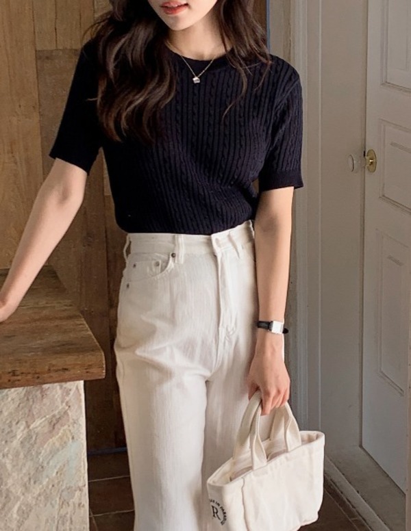 半袖Tシャツ×半パンは、気温35度以上の真夏日の定番コーデ。ブラックやブラウンの無地Tにスッキリとしたボトムスを合わせるだけで、ラフになりすぎずカジュアルだけれど品のある着こなしが叶います。