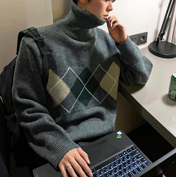 ▽タートルネックを引き立てる「モノトーンコーデ」!