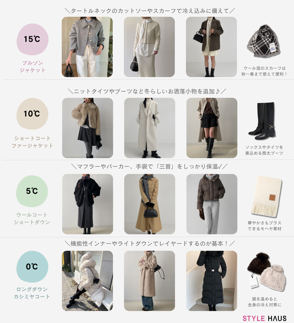 お洒落さはもちろん、気候に合った服装はファッションの基本!気温別に最適なアイテムをしっかり覚えて、オールシーズン快適に過ごしましょう♡