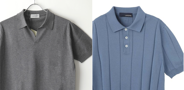 【メリット】定番の綿仕立てのポロシャツと違い、ニットの質感を楽しめるポロニット。落ち着いた雰囲気でラグジュアリーな印象があります。