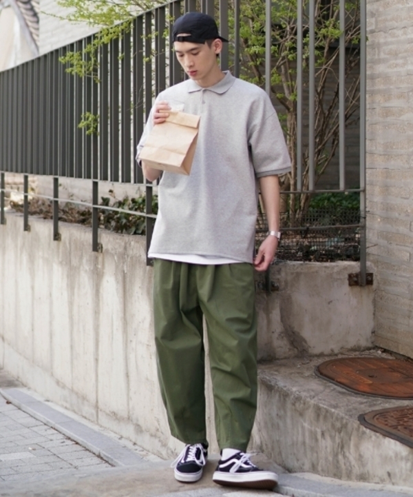 ポロシャツ×ワイドパンツ