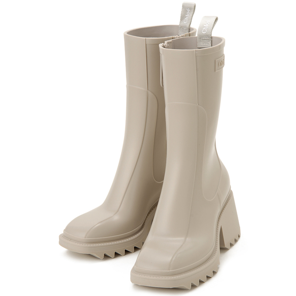 女性らしいレインブーツが揃う「Chloe(クロエ)」は、チャンキーヒールや厚底タイプなど、スタイルアップ効果の高いアイテムが豊富!定番ブラックに加え、ブラウンやベージュ系などエレガントに使いやすいカラーバリエーションにも注目です。