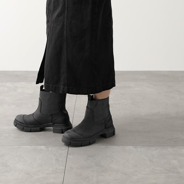 遊び心溢れるデザインが揃う「Ganni(ガニー)」ですが、意外にもレインブーツはオールシーズン使えるベーシックさ!スッキリとしたシルエットで美脚効果が高いです。