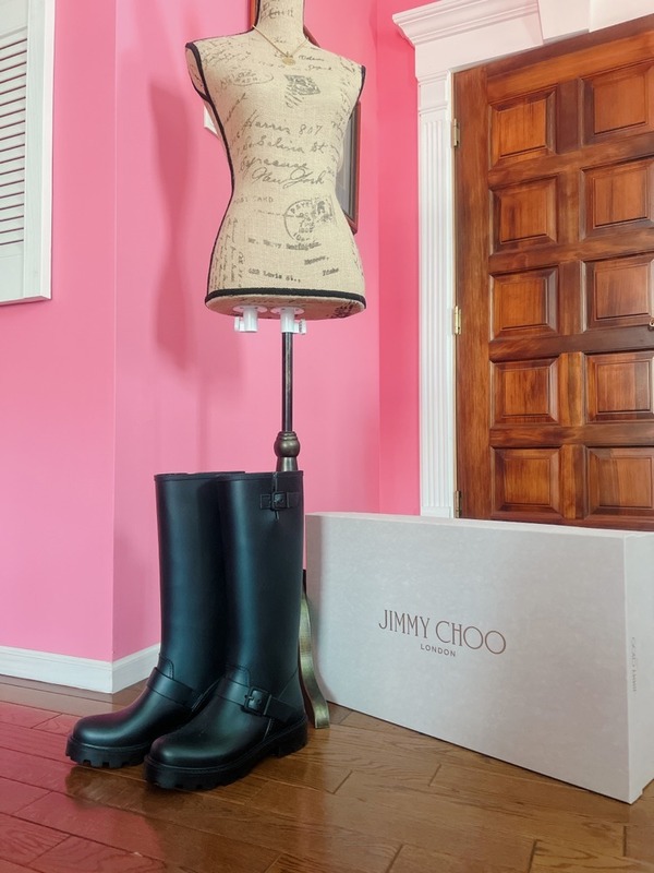 「Jimmy Choo(ジミーチュウ)」のレインブーツは、バイカーブーツから着想を得たマニッシュなデザインが特徴。洗練されたデザインは、カジュアルにはもちろんオフィスカジュアルやきれいめのファッションにも合わせやすいです。