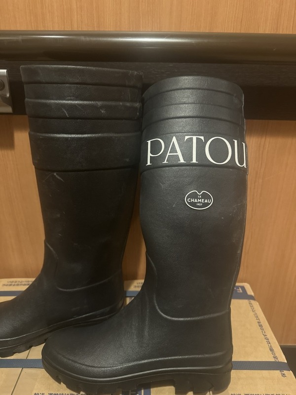 トレンド感全開にするなら、「PATOU(パトゥ)」のレインシューズがおすすめ!シンプルなデザインにあしらわれたブランドロゴが、足元からパリジェンヌ風の気品を漂わせます。