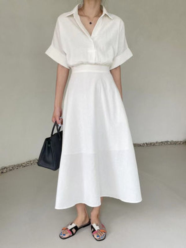 夏の日差しに似合う真っ白のワンピースは、ラグジュアリーなリゾートワンピースにオススメの1着。シャープなラインのデコルテカッティングが、肩のラインを美しく見せてくれます。