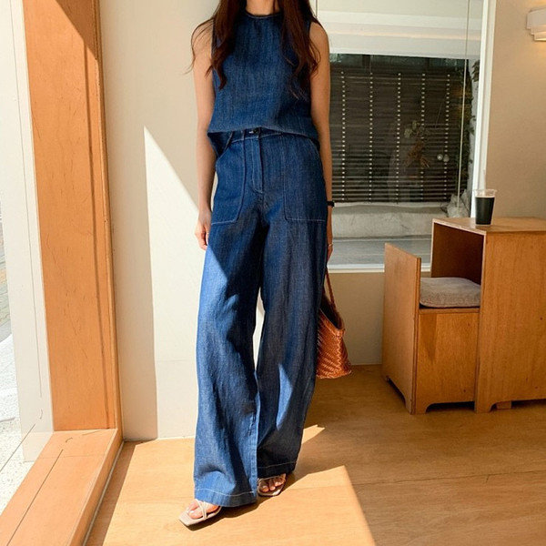 デニムのセットアップってハードルが高い気がするけど、実は簡単におしゃれ上級者になれる優れもの。こなれた印象をあたえてくれて、合わせる小物選びも簡単。薄手のデニム地で、暑い夏もサラッと着られます。