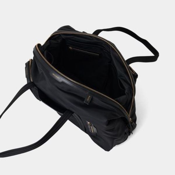 ハンドルやフラップ部分はレザー仕様になっているため、高級感も忘れません♡コンパクトに畳めるから、使わないときはメインのバッグに収納しておくこともできます。