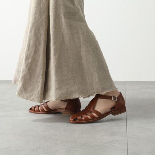 イタリア・トスカーナ地方で60年以上の歴史を誇る老舗シューズブランド・パスクッチは、全体的にフェミニンで女性らしい華奢さを強調するシューズデザインが魅力。すっきりとしたシルエットのグルカサンダルは、マットなレザーが上品で落ち着いた雰囲気です。