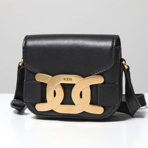 ▲スムースレザーで作られたミニサイズのクロスボディは、前面に『トッズ』のロゴが入ったチェーンモチーフが輝くコンテンポラリーなデザイン。カジュアルなジーンズからフォーマルなスーツにもバランスよくマッチし、さりげなく華やかな印象にしてくれます。