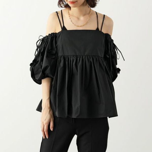 デコルテをきれいにみせてくれるスクエアネックでトレンド感のあるトップス。袖をシャーリングで立体的に表現した、フェミニンな中にモード感漂うシルエット。ブラックはシックに、ブルーは爽やかに決まります。