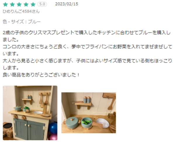 2歳の子供のクリスマスプレゼントで購入したキッチンに合わせてブルーを購入しました。