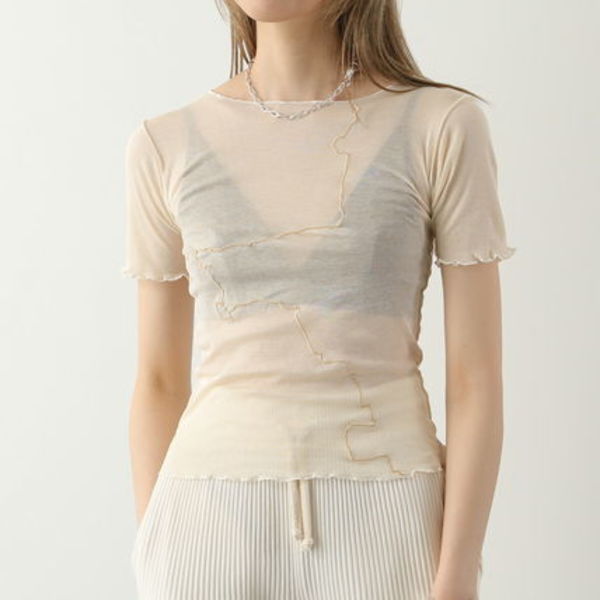 Tシャツやカットソーだとカジュアルすぎるとお悩みのあなたは、トランスピアレントなコットンTはいかが?伸縮性に優れ肌触りの柔らかなコットン素材と体にフィットするラインで女性らしさを楽しみたい。