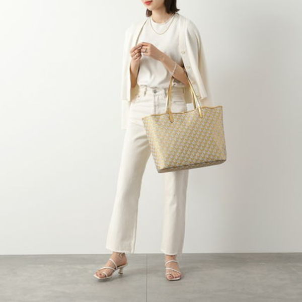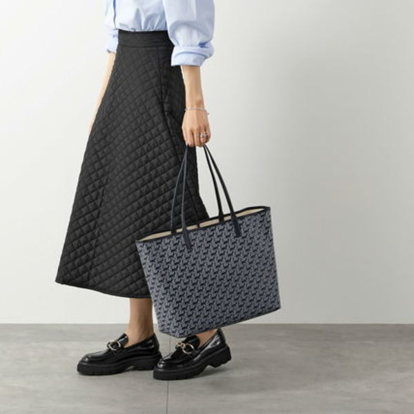 モノグラムのコーティングキャンバスバッグは十分な収納力を備え、オンオフどちらも使えるシックなデザインも嬉しいポイント。