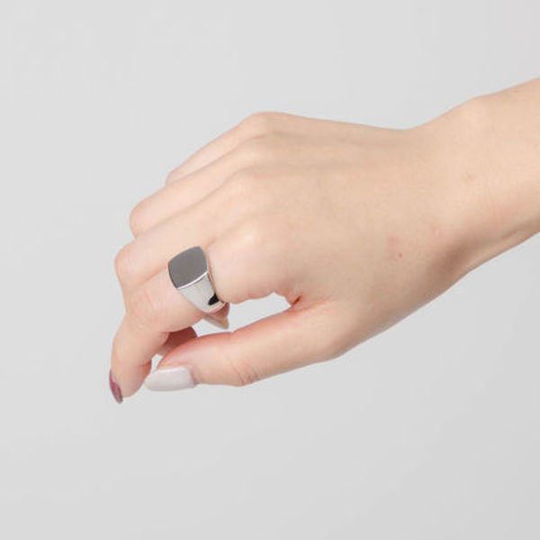 リサイクルされたシルバー925を使用したクッションリングは、シンプルながらも存在感を放つデザイン。指先に光沢と深みを与える、洗練感が楽しめるアイテムです。