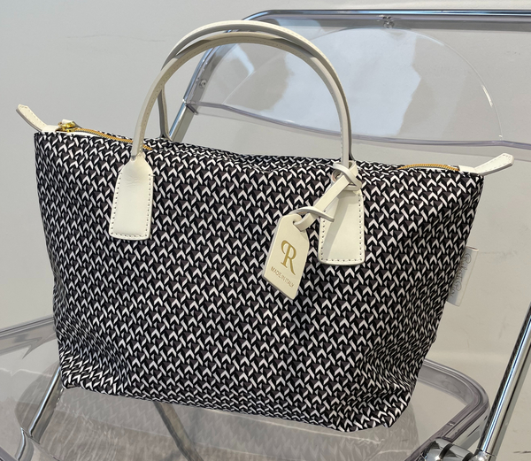 全体に施されたテキスタイルプリントが特徴的なハンドバッグは、ジップ開閉の内側メインコパーメントにファスナーポケット、大きさの異なる2つのオープンポケットを配備。ショルダーストラップはメタルフック付きで取り外し可能です。