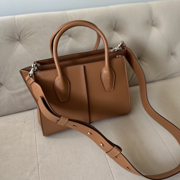 エレガントなスムースレザーのショッピングバッグ「HOLLY(ホリー)」は、内側に大きなコンパートメントが備えられ、荷物をしっかりオーガナイズしたいあなたにぴったり。取り外し可能なストラップは横幅が広く肩に負担をかけにくい気遣いも◎。