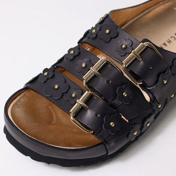 多重ベルトにお花があしらわれた甘辛ミックスなLongchamp(ロンシャン)のコンフォートサンダルは、ベルトホール付きでサイズ調整が可能。足の甲が薄い人も厚みのある人もご自身に合わせてカスタムフィットでき、履き心地抜群です。