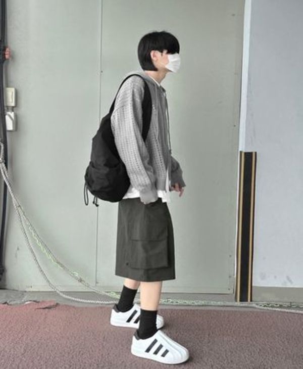 2023年のハーフパンツはオーバーサイズが大きなトレンド。ワイドなシルエットで、膝下まである長めの丈感が特徴です。