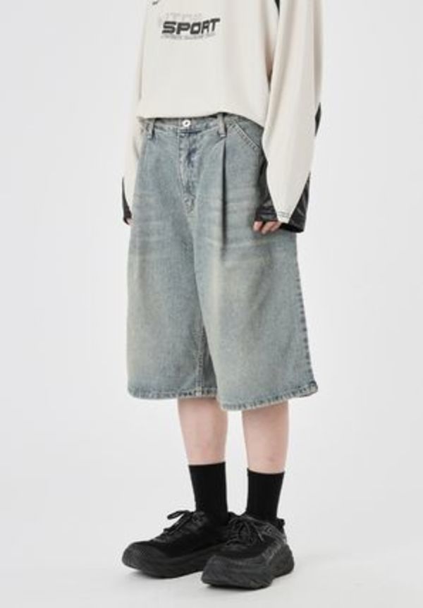 トレンドシルエットにウォッシュ加工とトレンド要素をふんだんに盛り込んだRaucohouse(ラウコハウス)のデニムハーフパンツ。