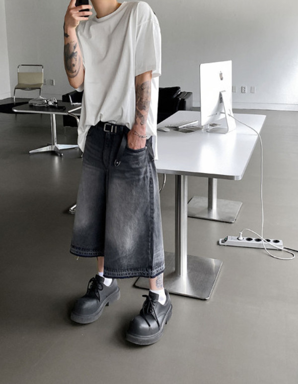 HOLY IN CODE(ホーリーインコード)のハーフパンツは、ほとんど七分丈に近い丈感と、スカートのように広がったワイドな裾が印象的。