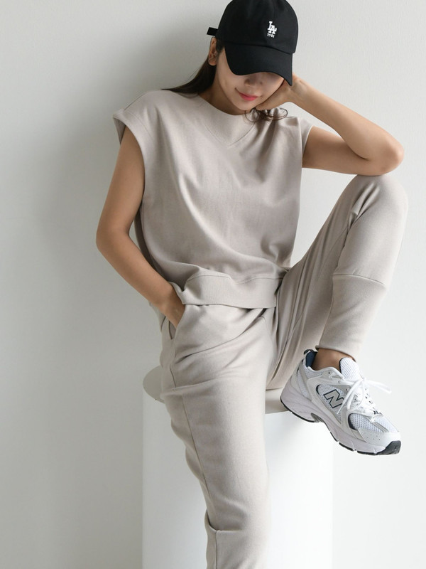 搭乗ルックから大活躍間違いなしのスウェットセットアップももちろん要チェック。パワーショルダーになっていたり、ひとクセあると洒落見えしやすいので、シンプルすぎないデザインがおすすめ。