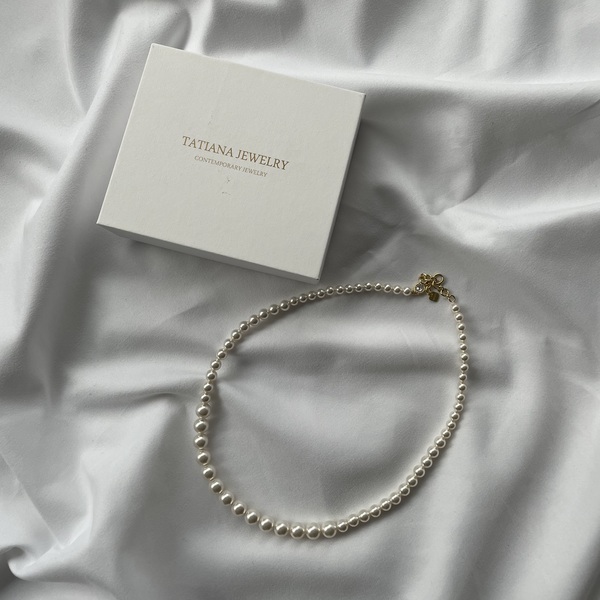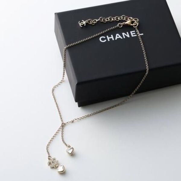 ∟エレガントかつ洗練されたデザインが魅力のシャネル。シグネチャーであるCCロゴやパールをあしらったネックレスは、顔まわりを華やかに演出してくれます。