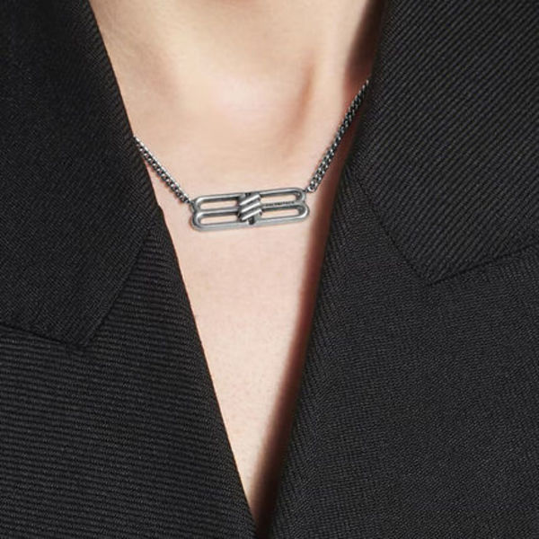 ∟アイコニックなBBロゴをあしらったバレンシアガのネックレスは、際立つモード感を持つ逸品