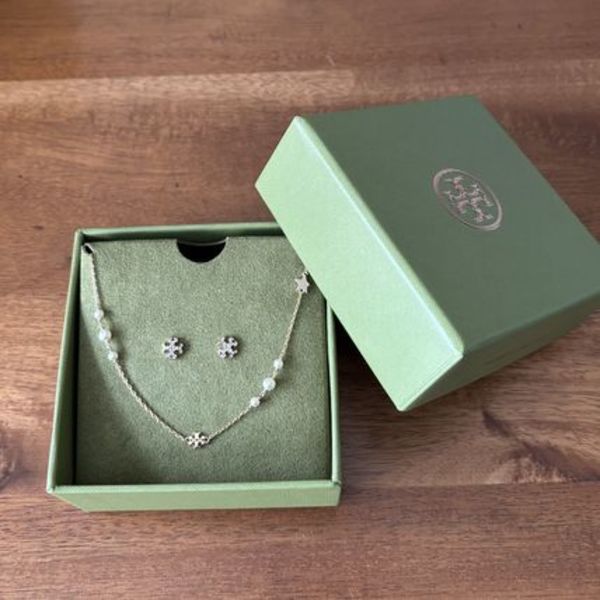 ∟トリーバーチはエレガントでデイリーに使いやすいネックレスが揃います。ビジューやパール、チェーンなど小ぶりながらも目を惹きます。お手頃なアイテムも多く、ピアスとセットのネックレスが15,000円以内で手に入るのが嬉しい!