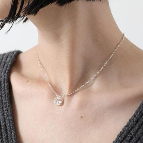 ∟小さなブランドロゴでもしっかりとリッチなブランド感を演出してくれるGUCCI(グッチ)。「GGマーモント」のネックレスは、洗練されたシルバーカラーで冬ファッションとも相性抜群です。