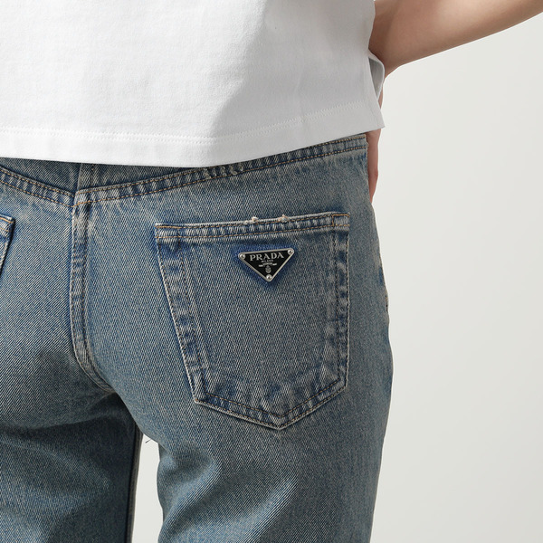 アイコニックなトライアングルメタルロゴがアクセントになった、PRADA(プラダ)のウォッシュドコットンデニム。メンズライクなデザインで、普段のコーディネートをワンランク上のスタイリングに仕上げてくれます。