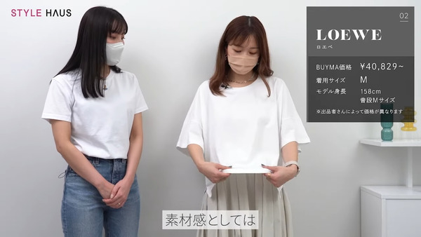 続いてご紹介するのは「ロエベ」のTシャツです。こちらのアイテムはアナグラムのロゴがとても可愛らしく、とても大人っぽい印象を受けます。ゆったりとしたシルエットですが、前側が少し短く後ろ側が長くなっていて腰回りをカバーしてくれるデザインになっています。
