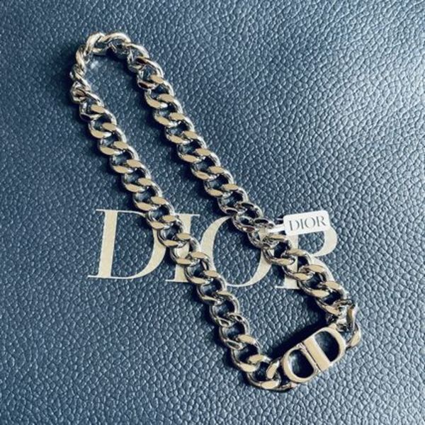 シグネチャーアイコンであるCDのロゴをバックルとして採用したチェーンのチョーカーネックレスが人気のDior(ディオール)。大ぶりなチェーンと鏡面仕上げのラグジュアリーな艶感が、首元を華やかにします。