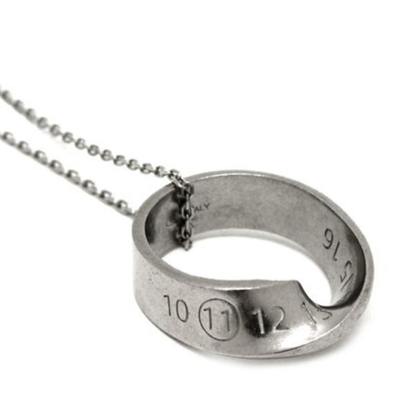 Maison Margiela(メゾンマルジェラ)のネックレスは、ナンバリングロゴが刻印されたリングやツイストプレートなど、マルジェラらしい独創的なデザインのアイテムが人気。