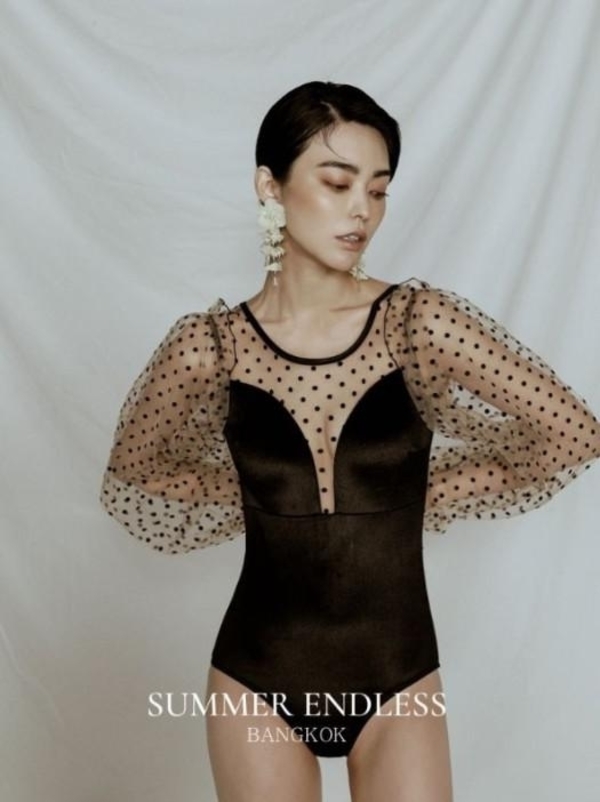 普段使いもばっちりできるパフスリーヴの水着は持っていて損なし。水着使いとしてもワンピース型は安心。
