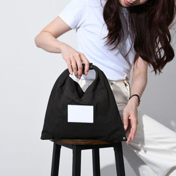 こちらのジャパニーズトートは、コットン素材でよりカジュアルに持ちやすい素材使いがポイント。フロントにはロゴの型押しパッチが、バッグにはホワイトステッチが施されアクセントに。スマートフォンや鍵などの必要最低限の荷物が入るコンパクトサイズがキュートな一点です。