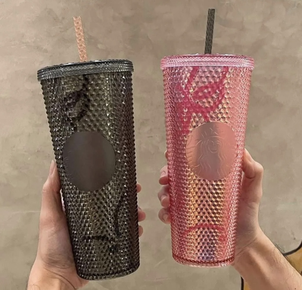 スタッズが散りばめられたコールドカップ!ブラックとピンクどちらも華やかな仕上がりで、ベンティサイズ以上が余裕で入るかなり大きめカップのタンブラーは、主役級の存在感です。