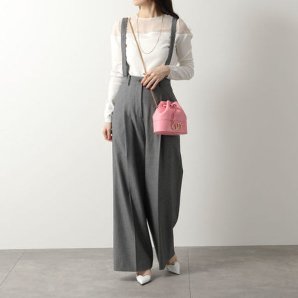 ∟スタッズやVロゴの圧倒的な存在感がコーデのアクセントとなるヴァレンティノ。今注目のバケットタイプのショルダーバッグは構築的なラインが魅力で機能性も◎エッジの効いた色合いと風合いが高級感満載です!