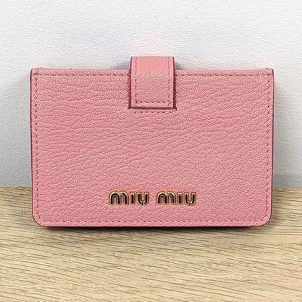 『MiuMiu(ミュウミュウ)』ならではのキュートなピンクのカードケースは、5つのカードポケットでカードをスッキリと収納可。ゴールドのスナップボタンとブランドロゴが、さりげなく華やいだ印象に。【サイズ:6.4~7×10×2~2.7㎝】【カードポケット×5】