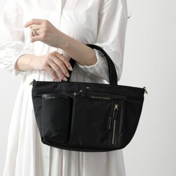 Anya Hindmarch(アニヤハインドマーチ)のショルダーバッグは、たっぷりマルチポケットがついた実用的なデザイン。ポケットには1つ1つ入れるべきアイテムが記されているのがユニークです。ナイロン製で、オンオフ問わず使えるシンプルなデザインに。