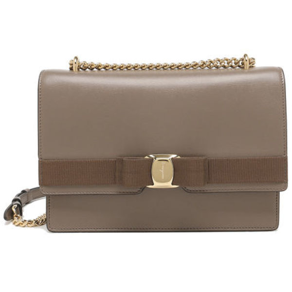 Salvatore Ferragamo(サルヴァトーレフェラガモ)の「ヴァラ」ショルダーバッグは、メタルパーツ付きのグログランリボンがフェミニンかつモダンな印象。ストラップのチェーン使いもポイントで高級感もあり◎。横マチや内ポケットを備えており、実用性もバッチリです。