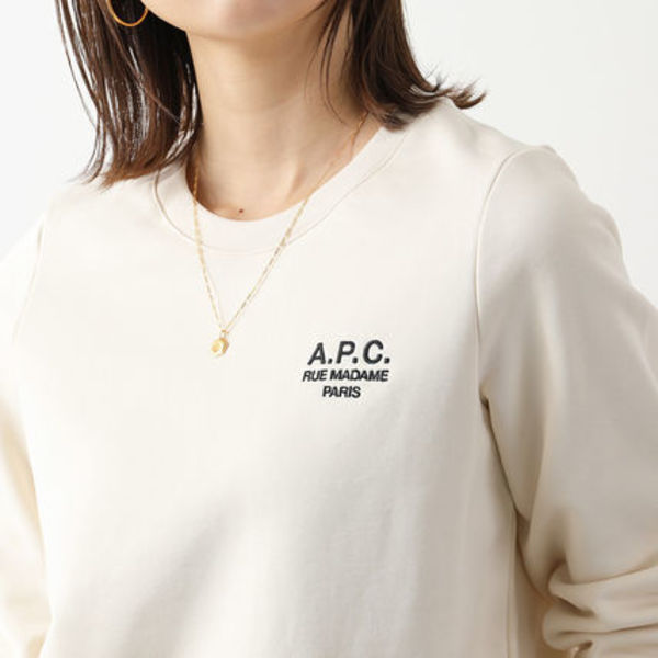 胸元のロゴ刺繍がアクセントになったトレーナーは、シンプルでカジュアルながらA.P.C.(アーペーセー)らしいきれい目な雰囲気があり大人女子のデイリーウェアにぴったり。裏起毛では無いライトな生地感なので、長いシーズン着用可能です。