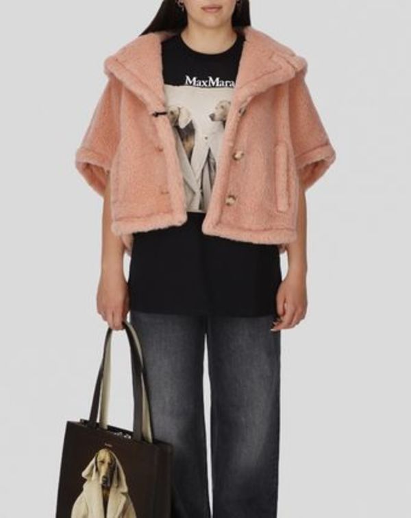 メゾンのアイコン・テディベアシリーズを軽やかに楽しむなら、ケープがおすすめ。こちらの「CAMBUSA」は短め丈のコンアパクトさがキュートで、低身長さんも着やすい一着です。