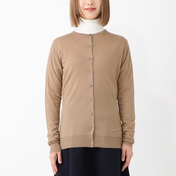 1784年創業のイギリス発ニットウェアブランド・JOHN SMEDLEY(ジョン スメドレー)は、軽量かつ網み目の細かいニットウェアが有名。その高いクオリティから、Yves Saint Laurent(イヴ・サンローラン)など、数々の有名メゾンのニットウェアを手掛けるほど。スリムフィットのカーディガンはボタンを閉めると1枚でトップスとして楽しめて、カラバリも豊富なので数枚あれば着回し力抜群です。