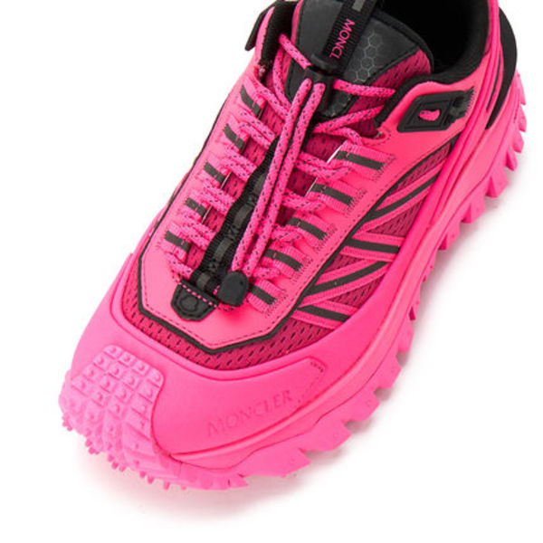 アウトドアの為にデザインされた「Trailgrip」スニーカーは、ピンクとブラックのバイカラーで存在感たっぷり。ラバー加工メッシュ素材を使用したEVAミッドソールによる軽くしなやかな履き心地が特徴で、快適性と安定性を実現した一足です。