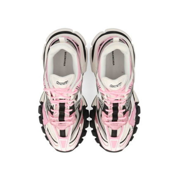 「Track.2」オープンスニーカーは、複雑で立体的なデザインがどの角度から見ても最高にクールな一足。シュータンにはモデル名が、その横にはブランドロゴが施されています。